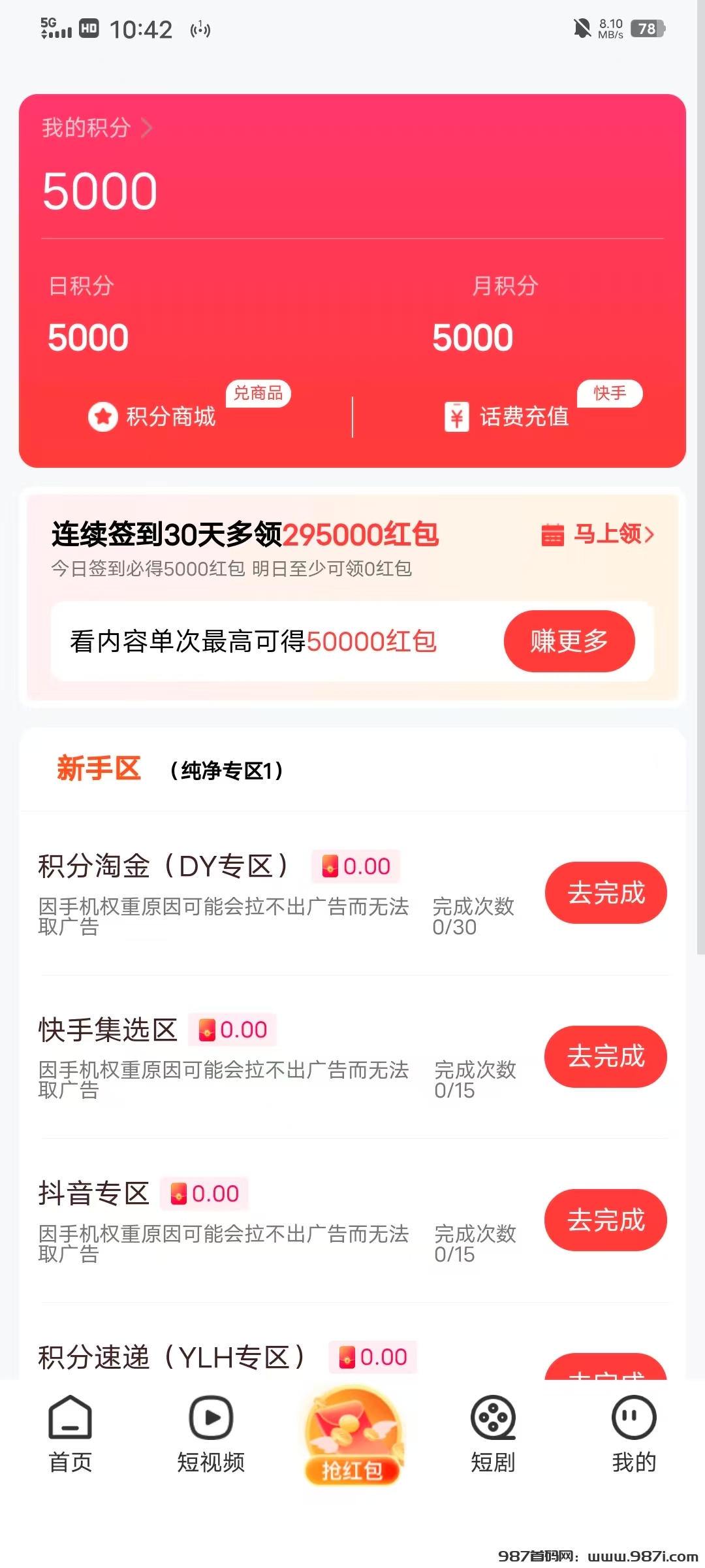 抢红包页面或首页签到